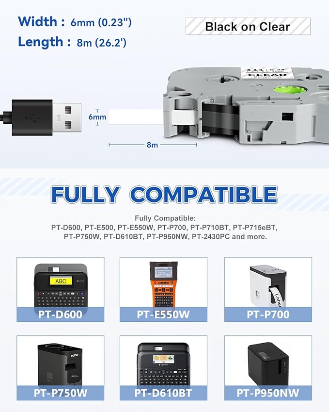 - Widely applicable: These 6mm 0.23" laminated clear label tapes are suitable for indoor and outdoor use. Compatible with Brother 6mm 0.23" black on clear label tape can be used to label various items such as home, office, industrial, supermarket, school, and other supplies