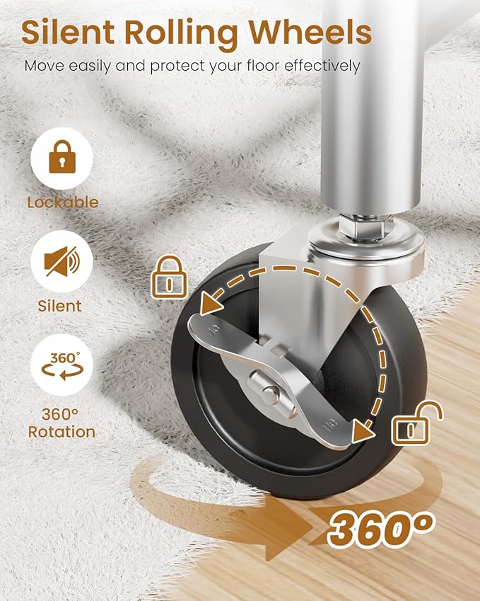- 𝙎𝙈𝙊𝙊𝙏𝙃, 𝙍𝙊𝙇𝙇𝙄𝙉𝙂 & 𝙇𝙊𝘾𝙆𝘼𝘽𝙇𝙀 𝘾𝘼𝙎𝙏𝙀𝙍𝙎: The casters of our coat rack have been carefully designed to move over a variety of floors such as hardwood, tile or carpet. Additionally, the 2 lockable wheels provide security, allowing you to keep your wardrobe rack securely in place when needed.