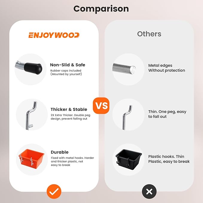 - Wide Application: ENJOYWOOD peg board wall organizer accessories kit is ideal for home storage, garage organization, kitchens, workbenches, workshops, basements, shops, tool rooms, warehouses, etc. Meet your daily storage needs and optimize your space and keep it neat and organized.