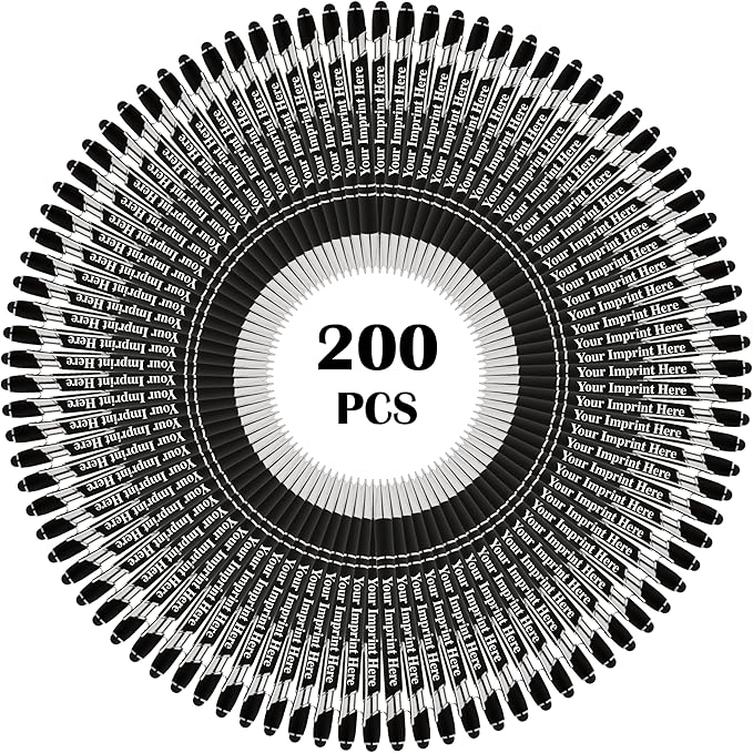 Up to 500 Pcs Custom Pens Bulk | Rainbow of Colors | Soft-Touch Metal Black Ink Personalized with Name or Message (Black, 200 pcs)