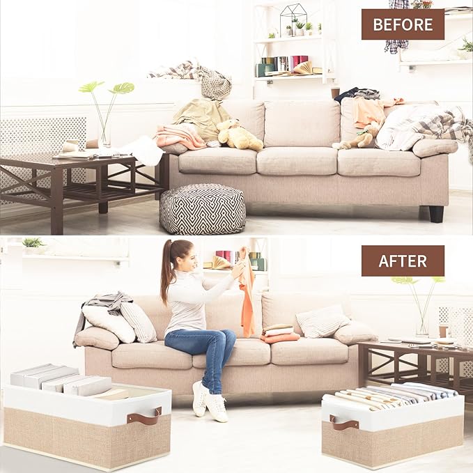 - LARGE CAPACITY - The foldable storage bins measures 18.9 x 11.02 x 7.87 inches / 48 x 28 x 20 cm, the capacity is larger than others, large capacity make them an excellent choice for keeping your space aesthetically pleasing, tidy, and well-organized
