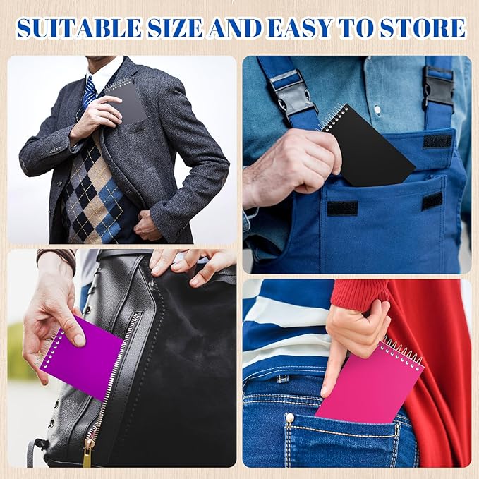 - Top Spiral Bound: each pocket memo pad adopts top spiral binding, so the page can lay flat for a more comfortable writing condition for right or left handed users; And the unobstructed spiral binding design won't hang up on clothes or backpacks, very thoughtful