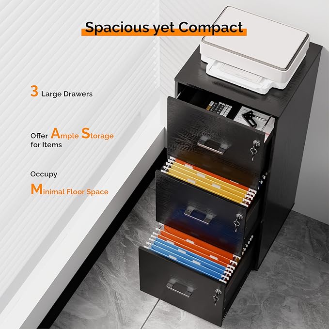 - 【Spacious yet Compact】This tall file cabinet features 3 drawers, offering abundant storage to neatly organize your paperwork and ensuring easy access, all while occupying minimal floor space.