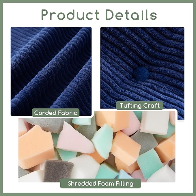 HIGOGOGO Square Stuffed Pouf Ottoman, Corduroy Poufs with Foam Chunk Filling, Furry and Fluffy Pouf Foot Stool Storage Ottoman, 21 X 21 Floor Poufs Foot Rest for Living Room, Navy