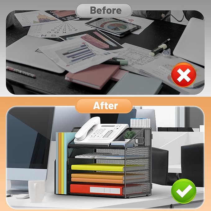 - 5 Tier Organization with Pen Holder: This Black desk organizer boasts a 5-tier design for efficient sorting of your papers, letters, and other office supplies, along with a dedicated pen holder. It's perfect for maintaining a tidy and uncluttered workspace. The desk file organizer is an essential desk accessory that contributes to an orderly and professional atmosphere