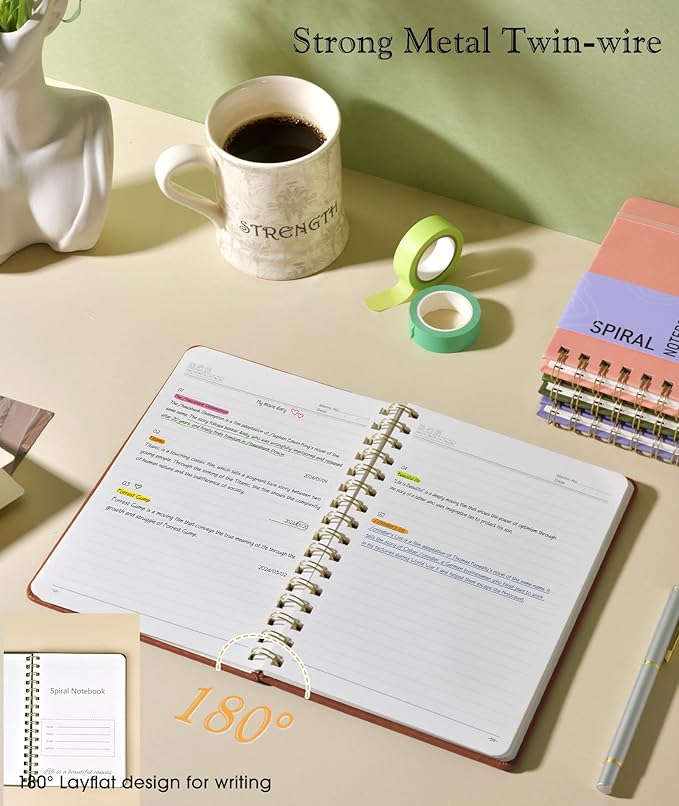- 【Metal Twin-wire Construction】Our wire-bound spiral journal notebook has a sturdy gold-color double wire spiral with easy-to-turn pages and keeps pages attached reliably. Metal wire ring makes it easy to tear out pages without disturbing the rest of the pretty notebook. The 180°flat binding makes it easy to take notes with either hand, making it easier to read and more efficient to keep track of things.