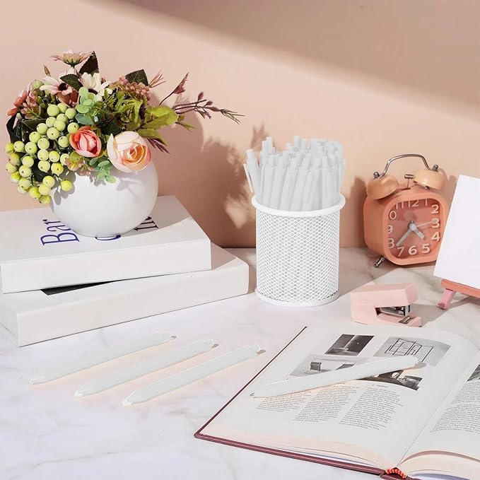 Fulmoon 50 Pcs Ballpoint Pens Bulk Retractable Comfortable Writing Pens Cute Back to School Supplies in Medium Point 1.0 mm for Teacher Student Bridal Shower Baby Shower (White)