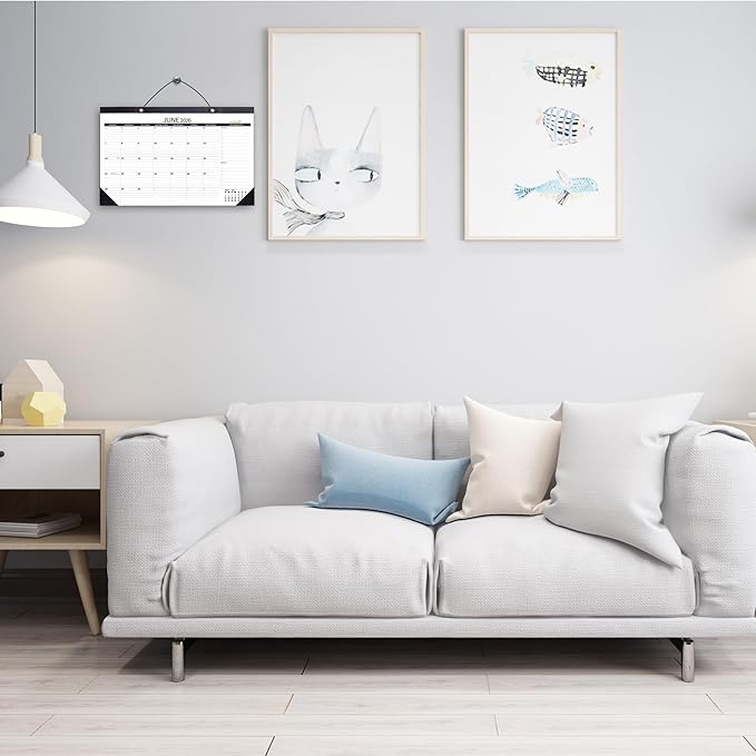 • Sleek, Functional Design with Versatile Hanging Options: Our office calendars seamlessly blend with any workspace, offering a sleek and modern aesthetic that adds elegance to your office decor while keeping you organized. Featuring protective black corner guards, our calendar provides both versatility and durability, allowing you to choose how you want to display it, be it on the wall or your desk.