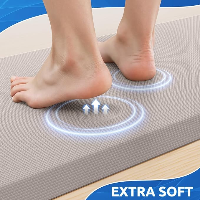 • EASY CARE: The anti-fatigue kitchen mat's surface is resistant to dust and debris. Its waterproof and stain-resistant material ensures easy cleaning with just a damp cloth, vacuum, or sweep, saving cleaning time and extending the mat's lifespan
