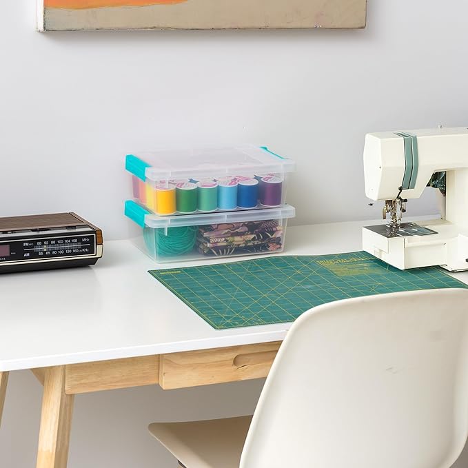 - SEE-THROUGH: No more looking for your precious stuff. The clear design of these flat clip box bins allow you to find any stored items instantaneously from any angle and is perfect for keeping sewing projects, fabrics, scrapbook paper, and more together and within view.