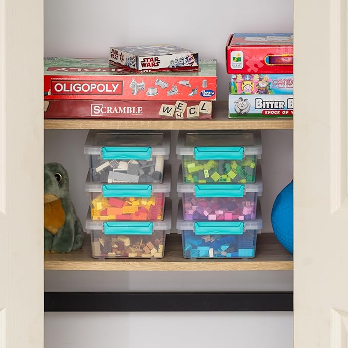 IRIS USA 2 Qt. Small Plastic Storage Bins with Lids, 6 Pack, Clip Box Containers for Craft Storage, Organizing Tote Sensory Bins for Home, Office & Art Supplies, Stackable, Clear