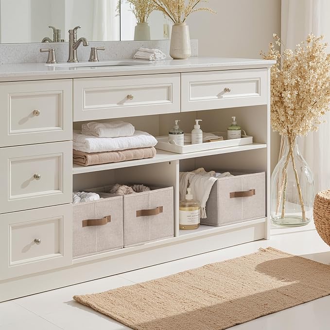 - Durable and Comfortable Handles: The Storage baskets for organizing come with sturdy handles that provide a soft and comfortable grip, making it easy to lift or pull out items with ease, ensuring durability for long-term use.