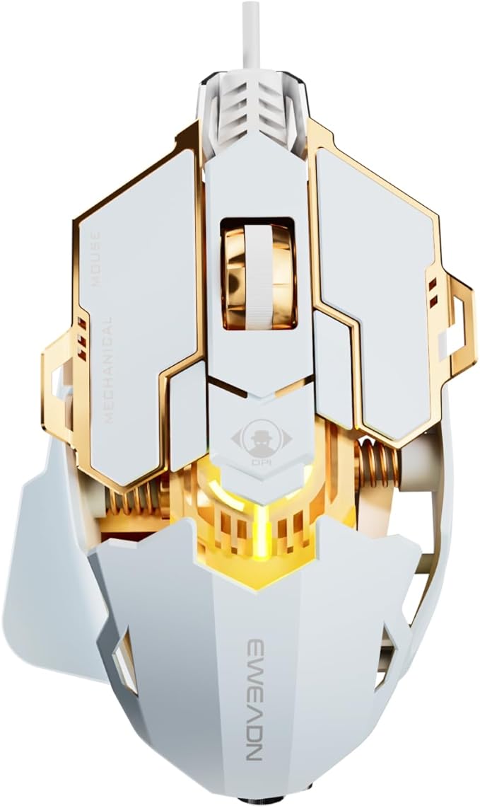 EWEADN G5 Wired Gaming Mouse, Ergonomic RGB Computer Mouse, 12800 Adjustable DPI, 9 Programmable Macro Buttons with Rapid Fire Key Compatible for PC/Laptop/Windows-White