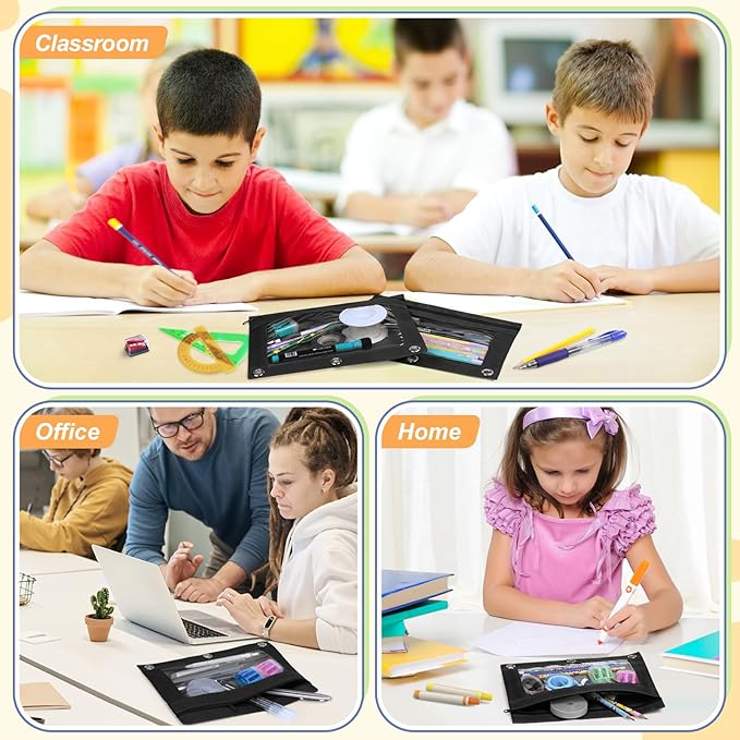 - Pencil Pouches for 3 Ring Binders- Each zipper pencil pouches measuring about 9.8 inches x 7.1 inches, with 3 rivet holes designed, fit in standard 3 ring binders, can be placed in folders. Ideal for storing basic writing utensils such as pencil, markers, scissors and more. Also perfect size for place in the bag, very portable.