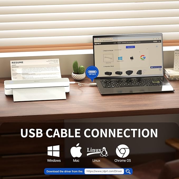 - Inkless Printing Technology: This advanced bluetooth printer utilizes thermal technology, no ink cartridges needed! With a resolution of 203 DPI, clear printing and high speed—completing a US Letter/A4 page in just 4-6 seconds. ( Note: Supports black-and-white printing exclusively and requires thermal paper. )