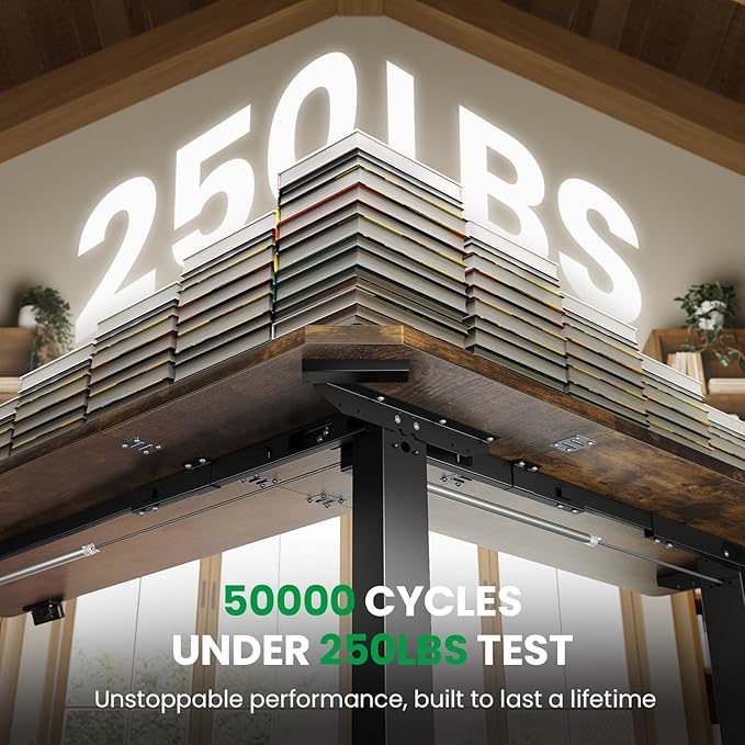 - 【Solid and Durable】The L-shaped electric standing desk features a durable and wear-resistant tabletop paired with three equal-length legs . During a 250LBs load-bearing test, the motor can smoothly perform 50,000 lifting and lowering cycles. SIAGO L-shaped standing desk — Redefining the lifecycle of office furniture through industrial-grade durability