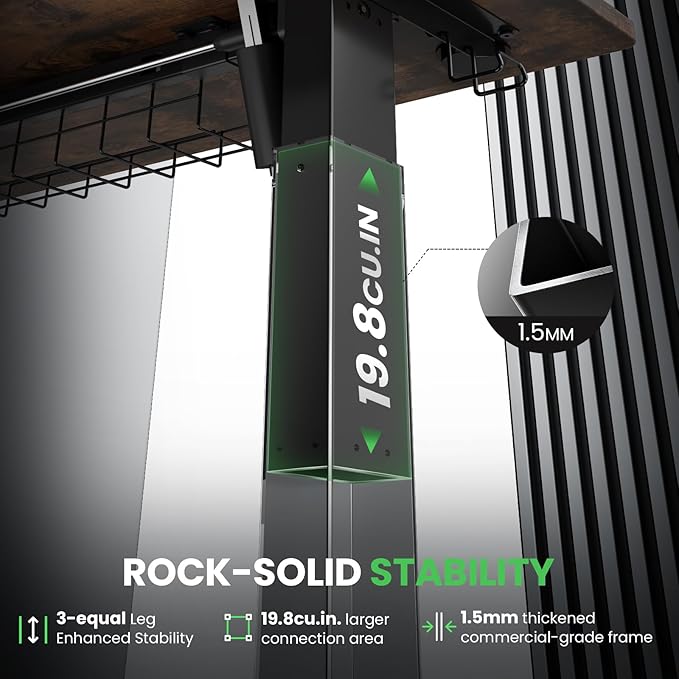 - 【Solid and Durable】The L-shaped electric standing desk features a durable and wear-resistant tabletop paired with three equal-length legs . During a 250LBs load-bearing test, the motor can smoothly perform 50,000 lifting and lowering cycles. SIAGO L-shaped standing desk — Redefining the lifecycle of office furniture through industrial-grade durability