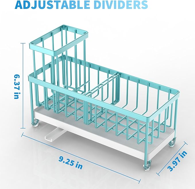 Cisily Turquoise Sponge Holder for Kitchen Sink, Sink Caddy Organizer with High Brush Holder, Kitchen Countertop Organizers and Storage Essentials, Rustproof 304 Stainless Steel, Soap Dispenser