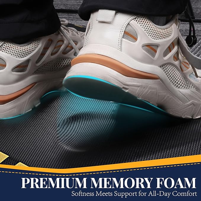 - PREMIUM ANTI-FATIGUE STANDING MAT: Designed with advanced high-density memory foam (0.9" thick), this anti-fatigue mat provides superior cushioning to reduce stress on your feet, knees, and lower back during prolonged standing. Perfect for workshops, kitchens, or office desks, it ensures all-day comfort and relief from back pain.