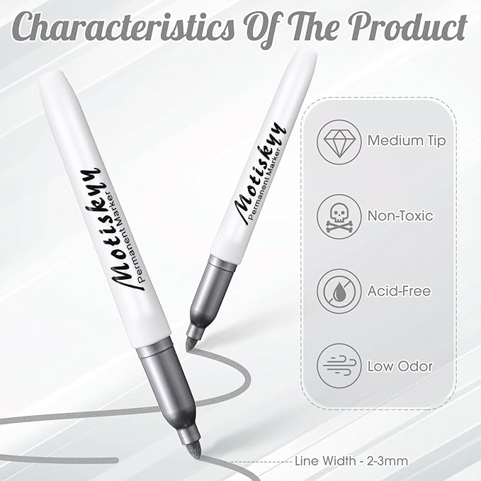 - Multi-surface Use: metallic marker pens do not need to be shaken, saving physical effort, and can be applied on a variety of surfaces, including paper, wood, fabric, canvas, stone, ceramic, plastic, metal, etc
