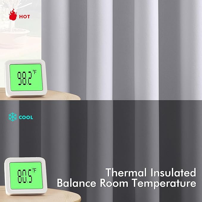 - High-Quality Material: Crafted from high-quality 225GSM polyester fabric, these curtains offer enhanced durability and elegant drape. The soft blackout material features triple-layer weaving technology, with a middle layer of black yarn for superior light blocking and privacy. Both sides feature the same refined color, ensuring a seamless look that elevates your home’s aesthetic with understated sophistication