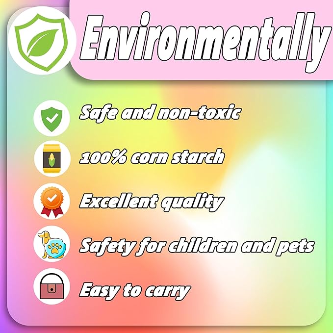 - Safe & Harmless - Made of edible corn starch, safe for skin and hair. If it accidentally gets into your eyes, please rinse with water.