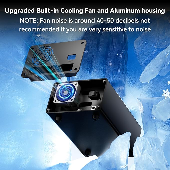 - 【No heat】This NVMe enclosure built in Aluminum-Alloy materials and 2 inch Silent Fans.In order to protect the user's data security, we use a fan that does not sleep and continuously cools the hard drive. Not recommended if very sensitive to sound.