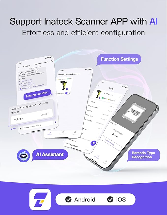 - Smart AI-Powered App & SDK Integration: The Inateck AI-powered app enables quick setup and efficient data processing, offering customizable options for seamless operations. The SDK allows easy integration with your existing systems, enhancing productivity and convenience