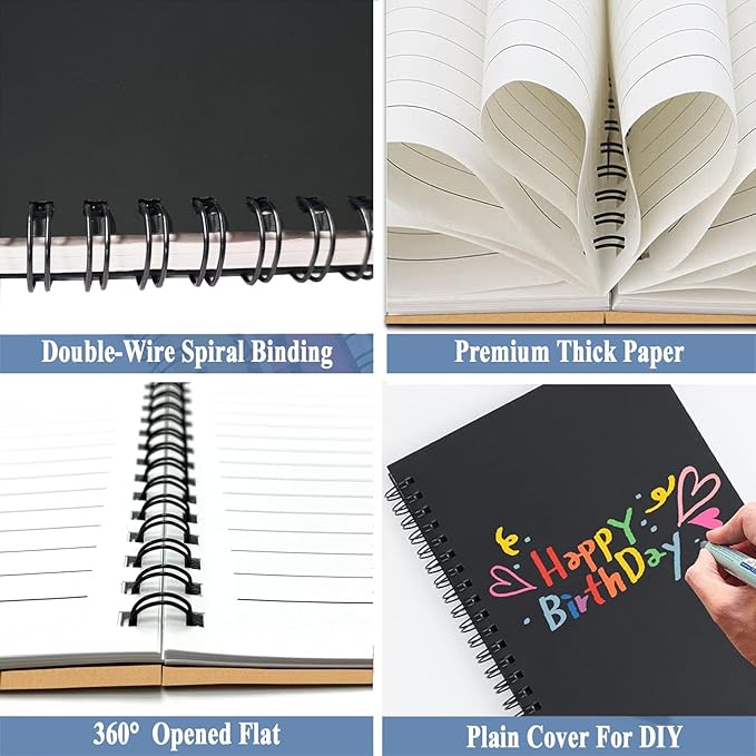 - 【SPIRAL JOURNAL NOTEBOOK】The wide ruled spiral bound notebooks can be lay flat and opened 360°freely without folding creases, also facilitate you to rip pages, the double-line spiral binding makes the edge firm and prevents the paper from scattering
