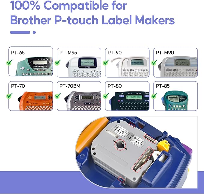 - Compatible for Ptouch label makers: PT-100 PT-110 PT-55BM PT-55S PT-65 PT-65SB PT-65SCCP PT-65SL PT-65VP PT-70 PT-70BBVP PT-70BM PT-70BMH PT-70HK PT-70HOL PT-70HOT PT-70SP PT-70SR PT-80 PT-80SCCP PT85 PT-90
