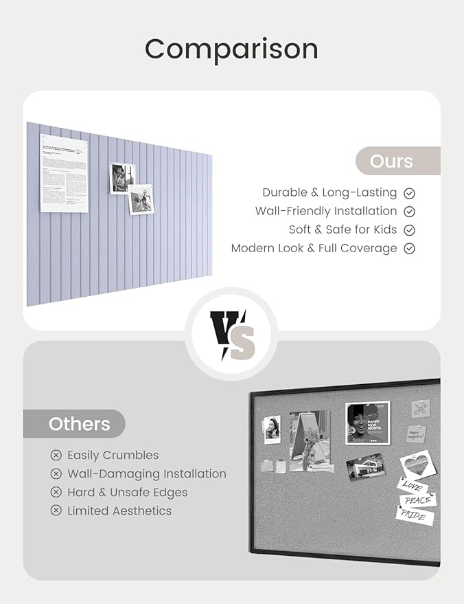 - 【Felt Bulletin Board – 6 Tiles Included】 Includes 6 felt cork boards (each 11.8" x 11.8") with 30 Pushpins that can be freely arranged into a large display board. Perfect for showcasing your schedules, ideas, and creations in home or office settings.