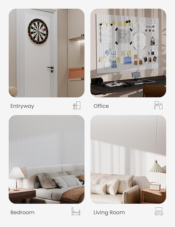 Bumusty Large Cork Board Alternative-47 x35 Felt Bulletin Board Tiles, with 30 Pushpins, 70 Adhesive Tabs, 12-Pack Slat Wall Paneling, Cork Boards for Office Push Pin Board Felt Board-Milky White