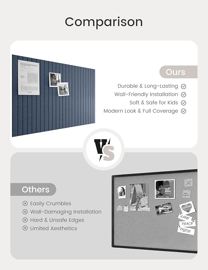 - 【Felt Bulletin Board – 6 Tiles Included】 Includes 6 felt cork boards (each 11.8" x 11.8") with 30 Pushpins that can be freely arranged into a large display board. Perfect for showcasing your schedules, ideas, and creations in home or office settings.