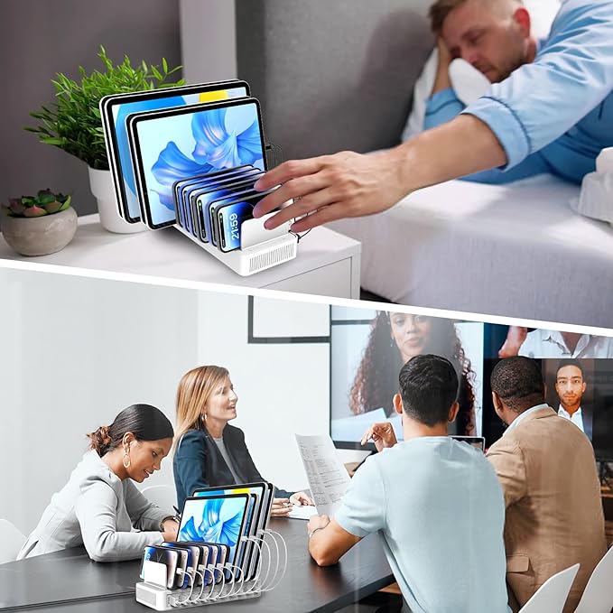 - ✔✔【Advanced Charging Technology】 :This multi port usb charging station can charge up to 10 devices simultaneously, with USB A port and Type-C port(Don't support for fast charge),Each port of the ipad charging station for multiple devices recognizes the exact current requirements of connected device