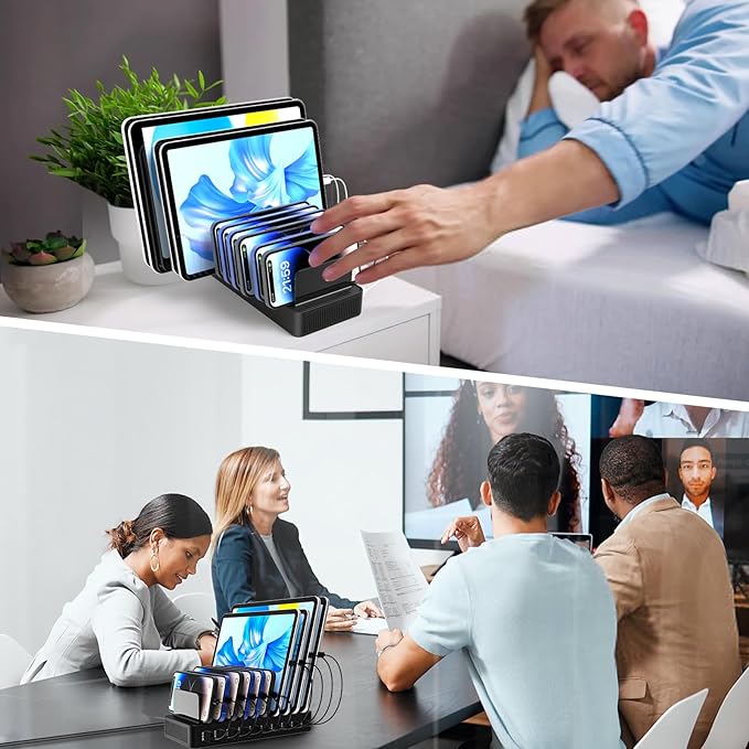 - ✔✔【Advanced Charging Technology】 :This multi port usb charging station can charge up to 10 devices simultaneously, with USB A port and Type-C port(Don't support for fast charge),Each port of the ipad charging station for multiple devices recognizes the exact current requirements of connected device