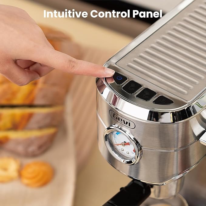 - 𝐄𝐧𝐣𝐨𝐲 𝐃𝐞𝐥𝐢𝐜𝐢𝐨𝐮𝐬 𝐄𝐬𝐩𝐫𝐞𝐬𝐬𝐨 𝐂𝐨𝐟𝐟𝐞𝐞 𝐃𝐫𝐢𝐧𝐤𝐬 - Equipped with a 20-bar pump, NTC temperature control, pre-infusion feature, and a pressure gauge, the Gevi stainless steel espresso coffee machines with a milk frother allows you to craft a range of café-quality beverages. From Mocha to Macchiato, Espresso to Americano, this expresso machine is not only ideal for home or office use but also makes a perfect gift for father, friends, and loved ones.