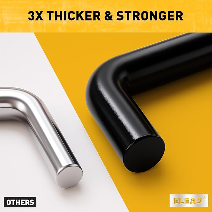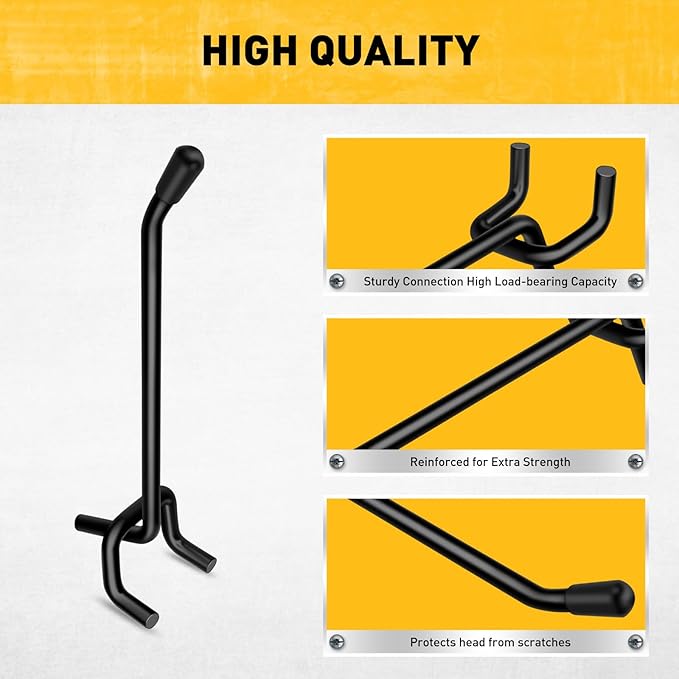 - 3X EXTRA THICK - Crafted from premium hardened steel with a matte black powder-coated finish, these pegboard tool hooks are 3x thicker and heavier than most competitors. Engineered for strength and corrosion resistance, each hook supports up to 55 lbs — perfect for daily heavy-duty use.