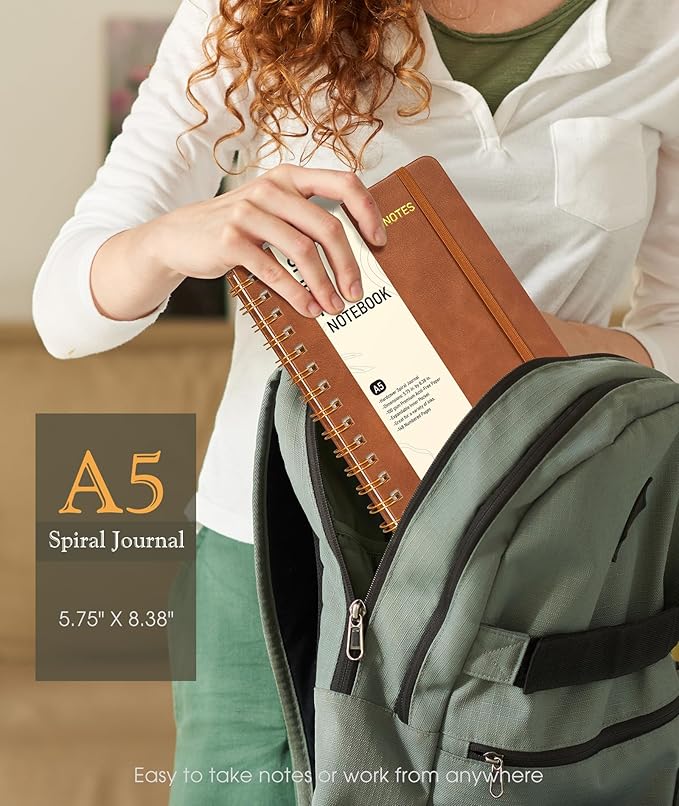 Graph Spiral Journal Notebook, A5 Hardcover Spiral Journals for Women Men, 100 GSM Graph Paper Notebooks, 150 Pages Spiral Bound Grid Notebook for Writing Note Taking Work 5.75" x 8.38", Brown