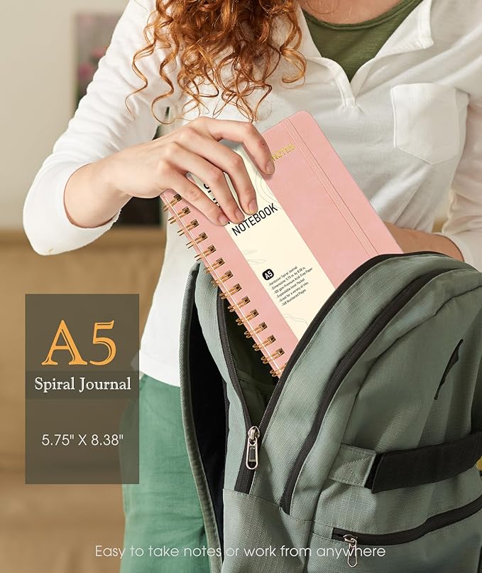 Dotted Spiral Journal Notebook, A5 Hardcover Spiral Journals for Women Men, 100 GSM Dot Grid Paper Notebooks, 150 Pages Spiral Bullet Dotted Notebook for Writing Note Taking 5.75" x 8.38", Blush Pink