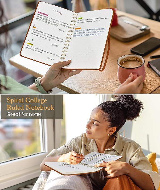 Dotted Spiral Journal Notebook, A5 Hardcover Spiral Journals for Women Men, 100 GSM Dot Grid Paper Notebooks, 150 Pages Spiral Bullet Dotted Notebook for Writing Note Taking 5.75" x 8.38", Brown