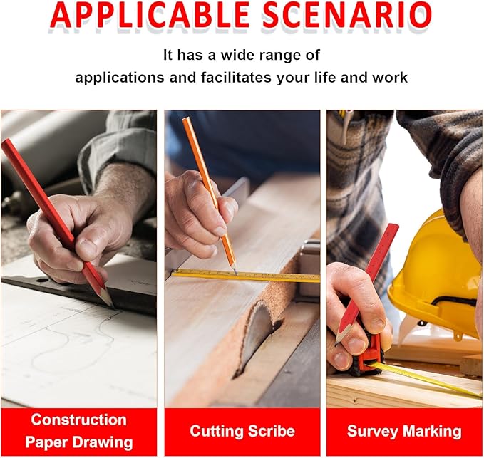 - Multipurpose: wood carpenters pencil can withstand the pressure of marking on hard, rough, and uneven surface materials, such as wood, plywood, cardboard, unprocessed wood, wood, paper, concrete, bricks, and so on