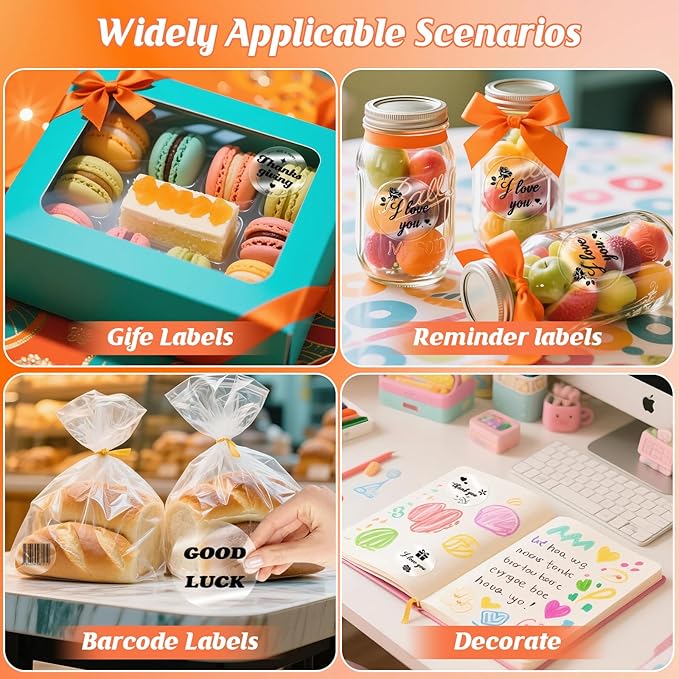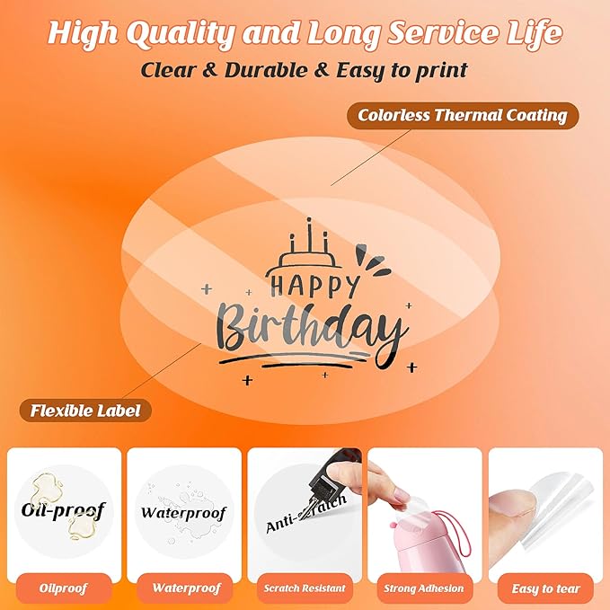 - {Nearly Invisible & Clear Printing}: The transparent sticker paper offers a near-invisible apperance, making printed content appear directly on objects—whether labeling glass jars, plastic containers, or metal surfaces. This clear design adapts to any background, ensuring professionalism for household organization, product packaging, or brand promotion. Use them as logo stickers customized with QR codes or thank-you messages for a polished look.