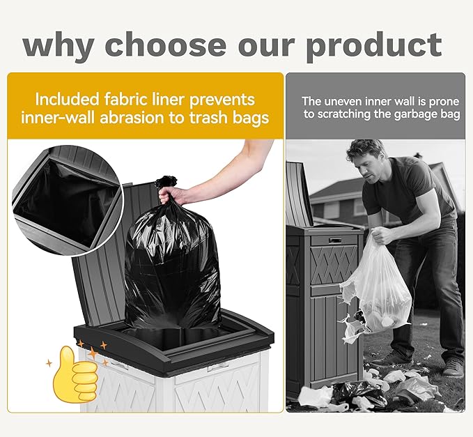 - Ultimate Liner Protection: No more frustrating rips; This outdoor trash can includes a durable, waterproof 210D Oxford fabric bag (80*120cm) designed to sit inside, shielding your garbage bags from tears