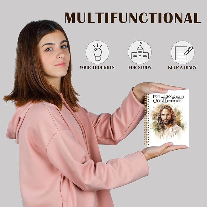 Qabliqo Jesus Christian Spiral Notebooks, Jesus Journals for Writing, Religious Christian Journal for Women Men, for God So Loved the World Bible Notebook for Note Taking, 5.5x8.3 Inch