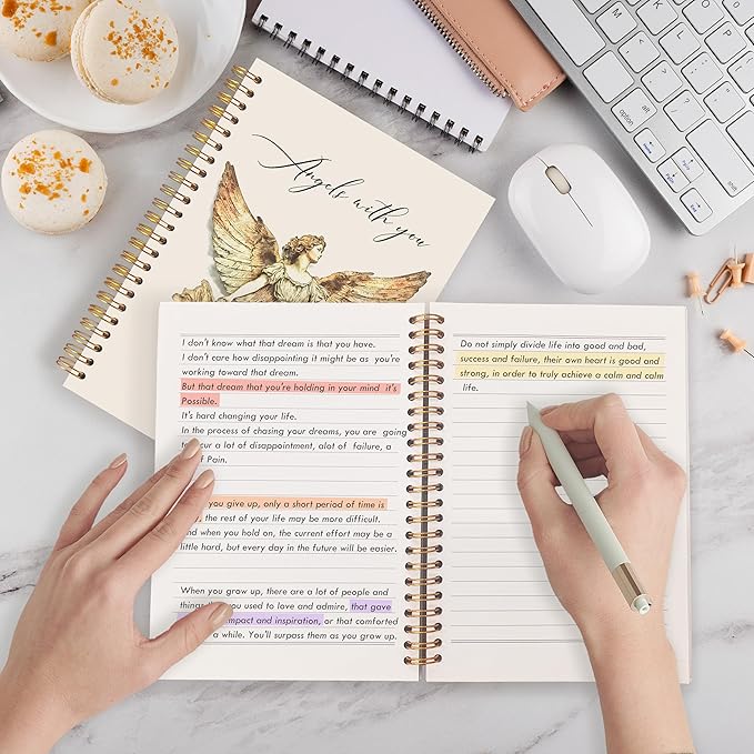 Qabliqo Angel Christian Spiral Notebooks, Faith Based Gifts Journals for Writing, Religious Christian Journal for Women, Prayer Journal, Angels with You Notebook for Note Taking, 5.5x8.3 Inch
