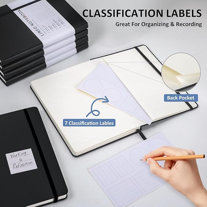 - 180° Lay Flat Design - The 180° lay flat design makes writing easier, reading more convenient, and taking notes more efficient. At the same time, the hardcover notebook is designed with an elastic closure band to ensure it is tightly closed to protect your content, and the inner paper will not be curled, and will be kept flat.
