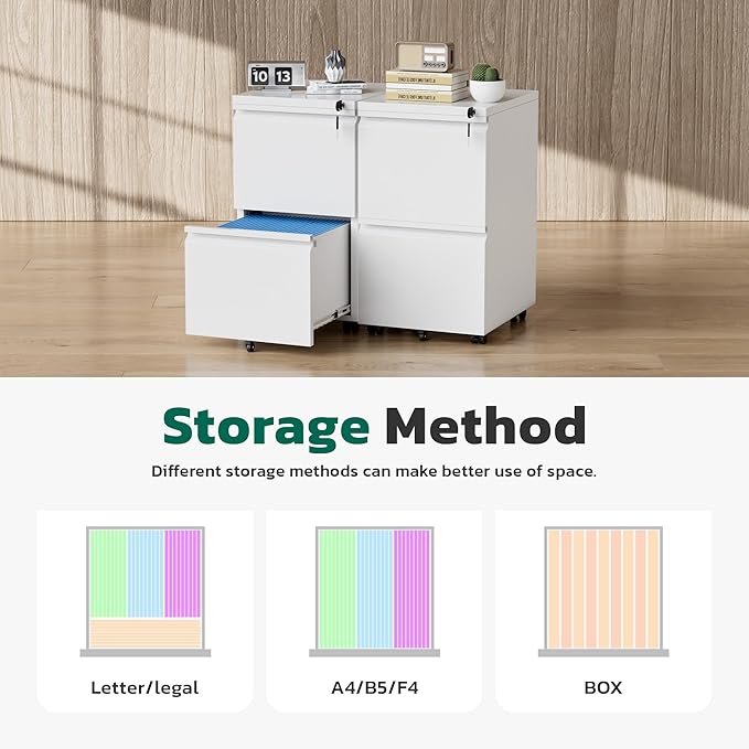 - 【High Quality Materials】 Greenvelly modern file cabinet on wheels is made of high-quality cold-rolled steel, which is more sturdy, durable, and stable than ordinary metal cabinets. Our lockable filing cabinet is coated with environmentally friendly phosphate free powder, which has excellent waterproof and rust proof performance, effectively extending the service life of the cabinet and providing lasting security for your valuable information.