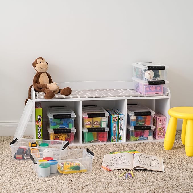 - STACKABLE STORAGE: Maximize space in your home, office, or game room. The securely locking lid keeps items safe and allows bins to be stacked on top of each other.