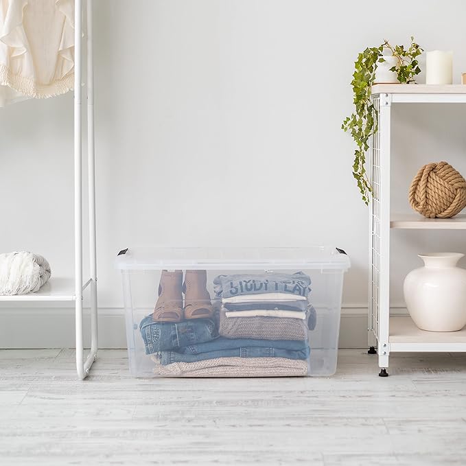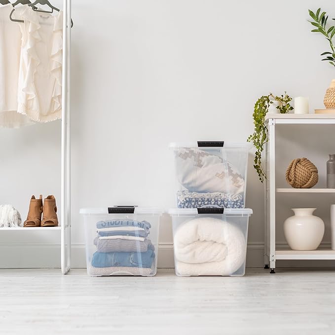 IRIS USA 2-Pack Storage Bins with Lids, 72 Quart, Made in USA Stackable See-Through Organizing Solution Latches Durable Nestable Containers Secure Pull Handle, BPA-Free Plastic