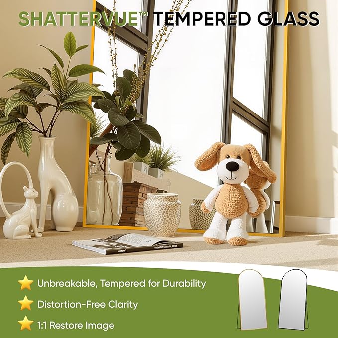 - Shatter-Resistant Glass - Our full length mirror engineered with a weighted, stable base to prevent tipping, ideal for homes with kids or pets. What sets it apart is the special explosion-proof material used, which ensures that even if accidentally damaged, the glass will not scatter all over the floor